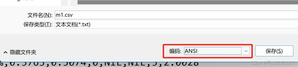 遇到这种问题我们不要慌,最简单的方法是将CSV文件用TXT打开,然后另存为,在保存按钮的左侧可以修改CSV文件的编码方式,修改后再用Excel打开CSV,中文就恢复正常了。